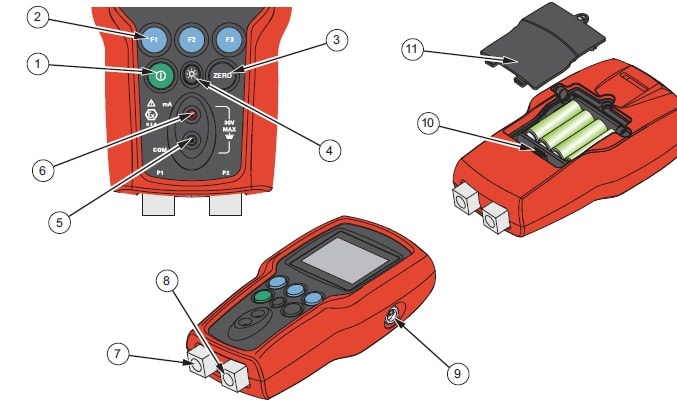 | ⑥ | Input terminals to measure current and a contact closer to switch test |